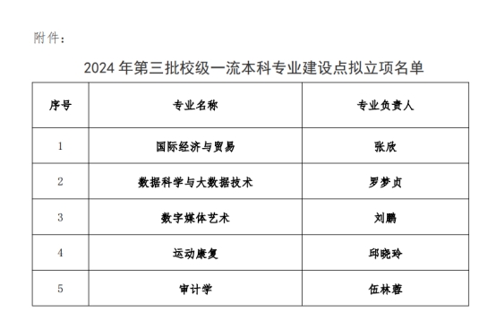 图:2024年第三批校级一流本科专业建设点名单