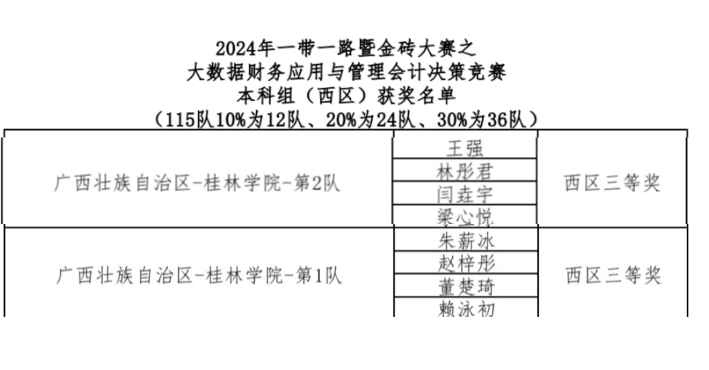 10月20日,我校管理工程学院的王强、林彤君、闫垚宇、梁心悦和朱薪冰、赵梓彤、董楚琦、赖泳初选手组成的两支参赛团队为代表桂林学院参加了“金砖赛”,喜获省赛三等奖。