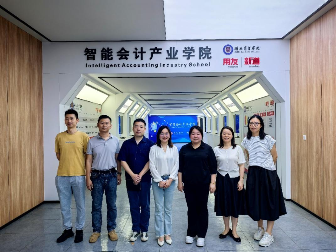 图:考察团与湖北商贸学院院长(左四)合影