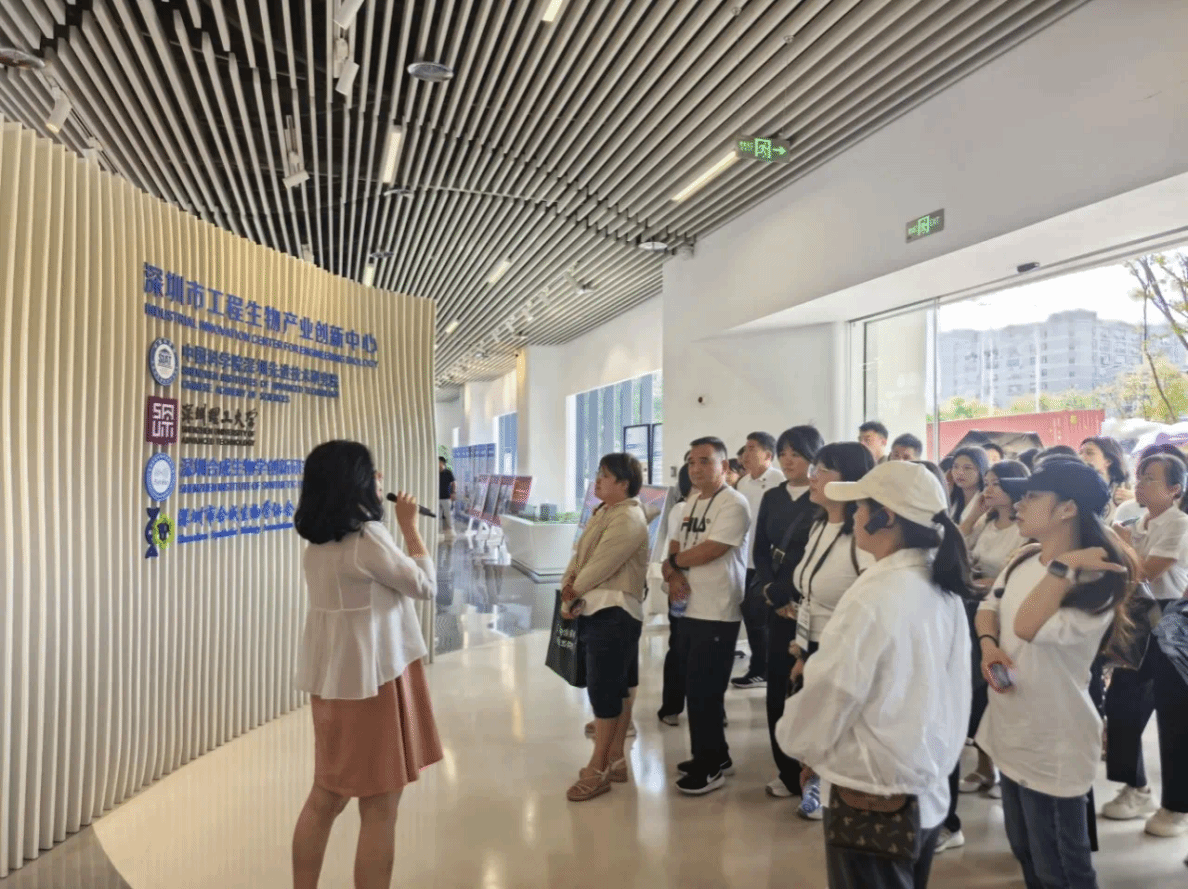 现场教学环节,老师们走进深圳市工程生物产业创新中心,调研楼上科研与楼下转化无缝衔接的协同创新模式。