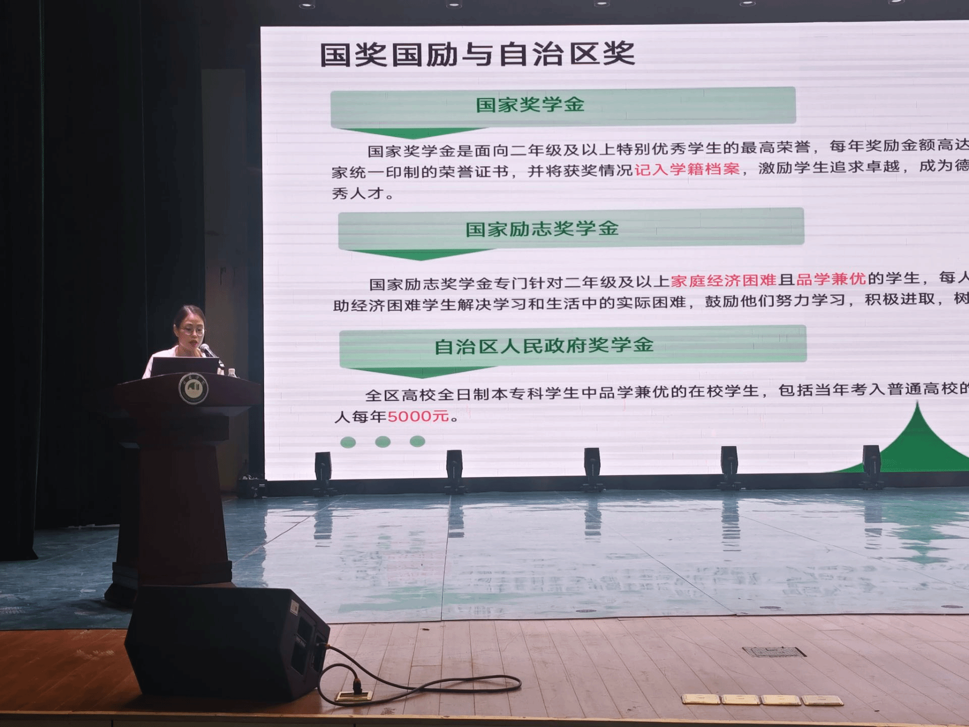 宣讲中,傅老师围绕 “国家资助、国家助学贷款升级、校内特色保障、家庭经济困难学生认定” 四大核心板块展开讲解。详细介绍国家奖学金、国家励志奖学金、自治区人民政府奖学金的申请条件与奖励标准,说明同一学年内三者不可同时获得,但可叠加申请国家助学金与校级奖学金;针对校内特色奖项,如至善校长奖学金、五好学生奖学金等,也逐一讲解评选比例、奖励金额及优先条件。