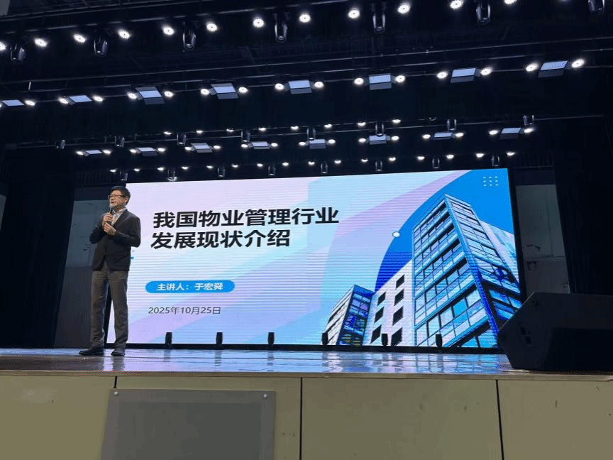 随后,桂林市物业服务行业协会名誉会长、校企合作企业代表为在场师生带来了题为《我国物业管理行业发展现状》的精彩讲座。他结合详实数据与行业案例,从行业规模、行业发展指数、上市企业发展情况以及行业生存现状等多个维度,深入剖析了物业行业的现状与未来趋势。