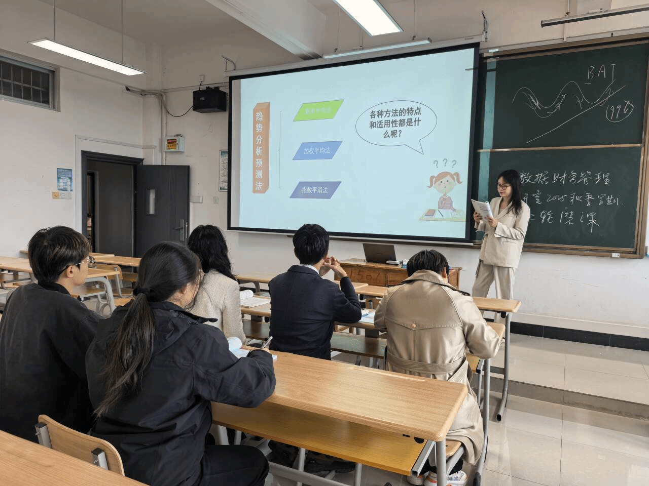 在实际教学展示中,师生更是全程联动。李根宏老师讲解 “资金筹集与风险控制” 时,学生代表现场模拟 “企业融资决策会议”,结合课堂理论提出疑问;梁晓珊老师演示 “EXCEL在财务管理中的应用” 工具时,学生代表分享实操过程中遇到的问题,倒逼教师调整教学节奏与演示步骤。这种 “教师展示 + 学生反馈 + 实时调整” 的磨课形式,让课堂设计不再是 “教师自导自演”,而是真正贴合学生学习需求的 “定制化方案”。