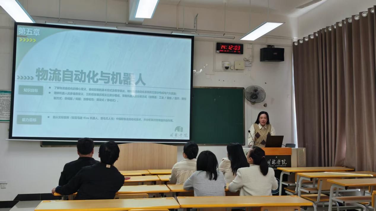 在集体研讨之后,活动进入了精彩的教师轮流讲课展示环节。阳老师率先进行了《交通运输工程》课程的模拟讲课。她结合丰富的案例,系统梳理了课程的知识框架,重点讲解了关键理论及其在实际工程中的应用,其深入浅出的阐述赢得了在场教师的肯定。随后,李老师带来了《智慧物流》专题的分享。她紧扣行业发展前沿,生动介绍了大数据、物联网、人工智能等新一代信息技术在物流领域的创新应用与发展趋势,课件制作精美,内容新颖,充分展现了智慧物流的广阔前景,引发了大家的浓厚兴趣和深入思考。