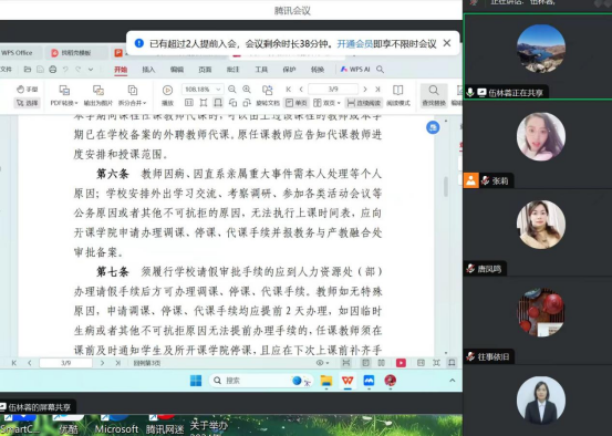 图2 伍林蓉副院长解读《调课、停课、代课管理办法》等制度文件