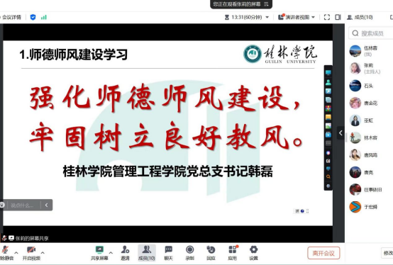 为深化师德师风建设,提升外聘教师的教学水平与职业素养,管理工程学院于2024年9月23日晚召开2024-2025学年秋季学期外聘教师师德师风建设与教学工作指导线上会议。本次会议由学院党总支书记、副院长、物业服务与不动产管理教研室主任张莉以及全体外聘教师共同出席,由张莉老师主持。
