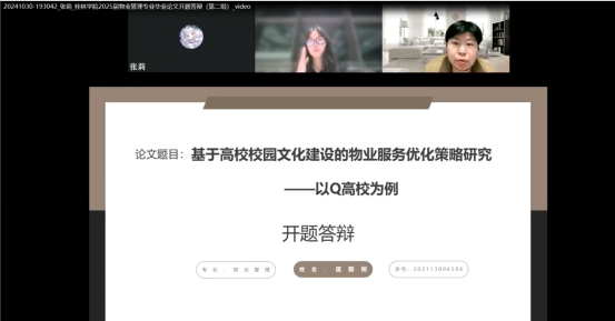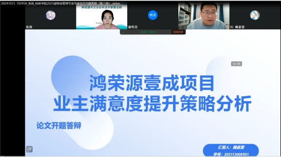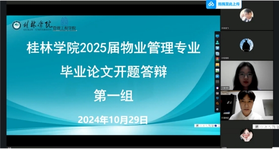 近日,管理工程学院物业管理专业在10月29日至31日晚上,通过线上钉钉平台连续举办了三场论文开题答辩会,共52名毕业生参加。鉴于2025届物业管理专业的学生是该专业的首届毕业生,为了确保毕业论文的质量,我们特别邀请了长沙学院物业管理专业黄蕾教授担任此次答辩会的评审专家。