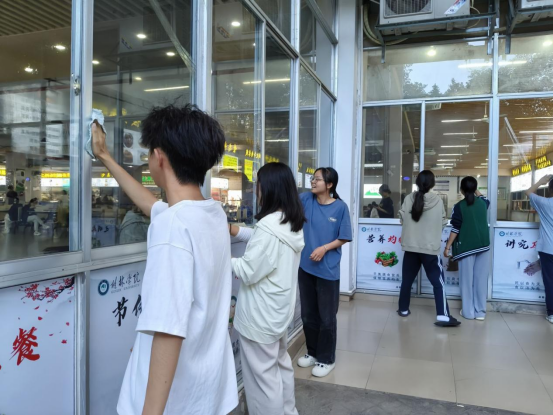 此次活动吸引了众多学生的积极参与,他们被分为五个小组,每组负责不同清洁区域,遍布校园的数个角落。 活动开始前,班委为每位同学准备了必备的工具:一副手套、每组10块抹布以及2个塑料袋。在老师的动员之后,同学们迅速进入状态,拿起工具,开始了紧张而有序的清扫工作。他们的任务是清理地上的垃圾,如塑料瓶、塑料袋等,同时细心擦拭有浮尘的橱窗,确保每一个角落都焕然一新。 活动中,同学们分工明确,协作默契。有的弯腰捡拾地上的垃圾,有的踮脚擦拭高处的橱窗,还有的负责将垃圾分类装袋。虽然天气微凉,但大家的热情却丝毫未减,劳动的氛围热烈而温馨。经过一个多小时的努力,清洁区域的环境焕然一新,原本散落各处的垃圾不见了踪影,橱窗也变得明亮干净。