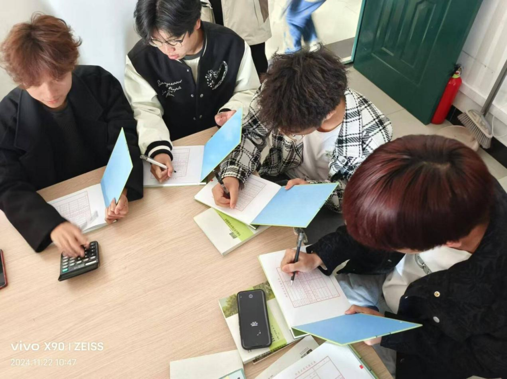 活动当天,参与同学到场入座,老师讲解了本次劳动教育的目的、形式和要求,介绍了3406实训室的功能和开展的实训项目,以及会计法律法规和企业的会计制度的要求,接着分发了往届《会计综合实训》课程结课归档的会计凭证、会计账簿和会计报表等会计资料。同学们以组为单位全神贯注,聚精会神地在阅读会计资料中的详细记账形式、内容、注意事项和要求等。