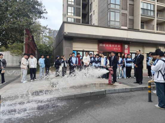 在联发·悦溪府项目现场,同学们首先听取了项目主管对消防安全设施设备的详细介绍,包括消防栓、灭火器、烟雾报警器等设备的使用方法和注意事项。随后,在专业人员的指导下,同学们亲身体验了消防栓和灭火器的操作过程,学习了如何在紧急情况下迅速有效地使用这些设备来扑灭火源。活动过程中,同学们积极参与,热情高涨,不仅认真听取讲解,还主动提问,与工作人员进行了深入的交流和互动。