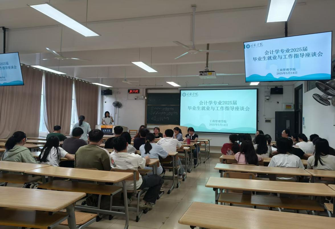 工商管理学院于5月14日下午召开会计学专业2025届毕业生就业促进座谈会,旨在精准对接学生就业需求,助力毕业生高质量就业。工商管理学院党总支副书记、智能会计教研室全体教师及2025届会计学专业毕业生共同参会。