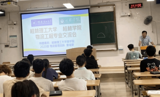 4月29日上午,物流工程教研室在1308教室举办了同专业跨校的学生交流会。会议邀请了桂林理工大学商学院物流管理专业2020级优秀毕业生曹福豪同学,分别从个人的学习、竞赛、论文、考研、实习、就业等进行了全方位分享。
