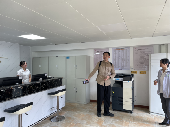 胡亦剑老师与中海物业方面确认了学生到岗实习等各方面具体安排,包括实习的岗位分配、工作职责以及培训过程,并对学生的住宿和生活设施进行了详细的考察,确保实习生的居住环境安全、舒适,有利于学生的学习和生活。此外,胡亦剑还详细了解了实习学生们的工作环境和工作内容。实习学生们将在各个中海物业项目的办公室、小区日常巡查等办公场所进行实习。