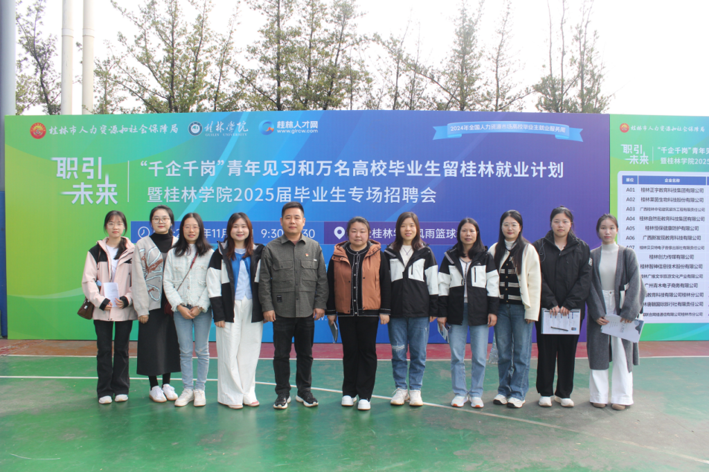 2024年11月22日,管理工程学院积极响应国家关于促进高校毕业生就业的号召,组织师生参加了由桂林市人力资源和社会保障局与桂林学院联合主办的“千企千岗”青年见习和万名高校毕业生留桂林就业计划暨桂林学院2025届毕业生专场招聘会。本次活动旨在为高校毕业生搭建一个与用人单位直接沟通的平台,促进毕业生高质量就业。