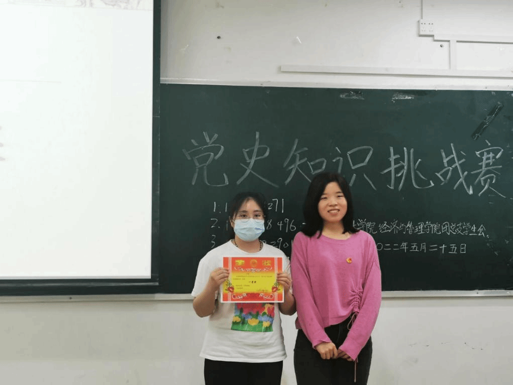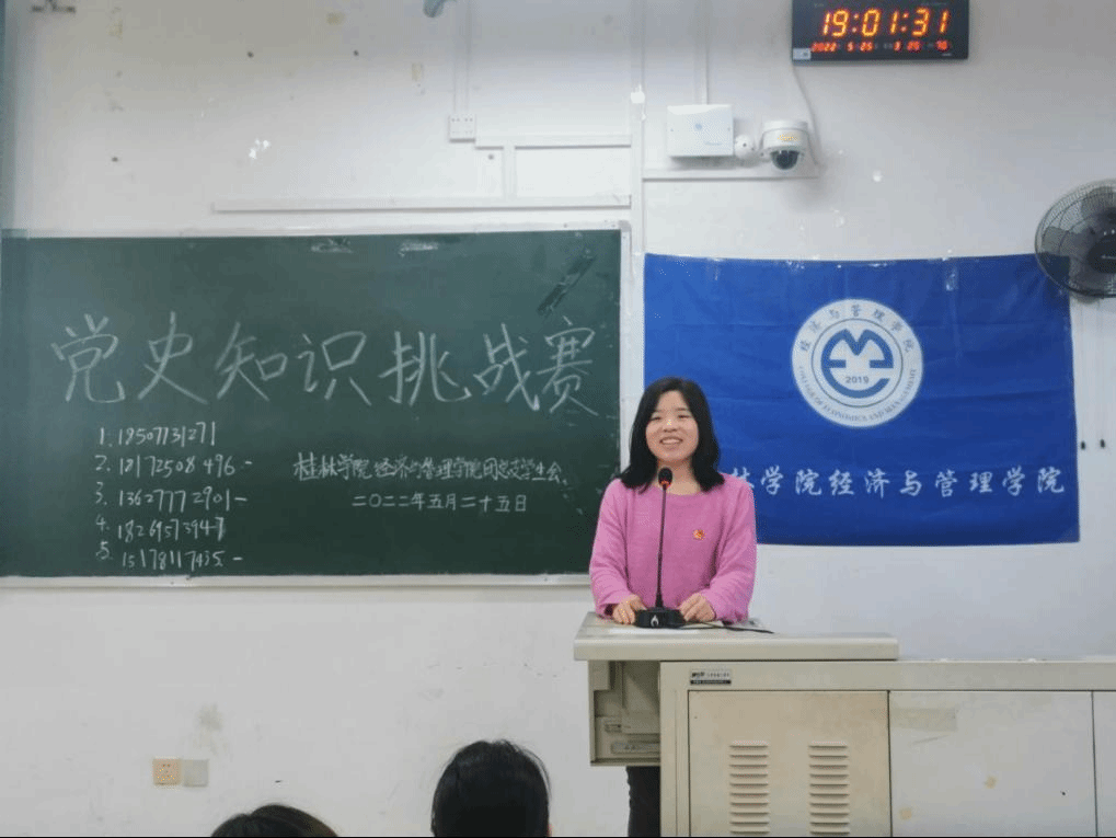 5月25日晚,经济与管理学院在1309教室开展以“重温百年史,共答青春卷”为主题的“党史”知识挑战赛。本次活动旨在提高团总支学生会成员们对党史的认识,提高其历史素养,引领其铸牢中华民族共同体意识,深化党史学习教育成果。此外,出席本次活动的嘉宾有团总支书记刘竹青、团总支副书记赵玲、学生书记团主席团成员。