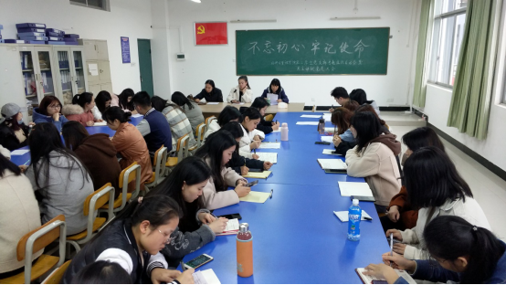 会议伊始,由支部书记谢鹃霞代表党支部委员会向大会报告支部开展“不忘初心、牢记使命”主题教育情况,支部开展“不忘初心、牢记使命”主题演讲比赛、实习经验交流会、就业交流会,参观全州县红军长征湘江战役纪念馆等系列活动,进一步强化师生党员的党性意识和责任担当意识。