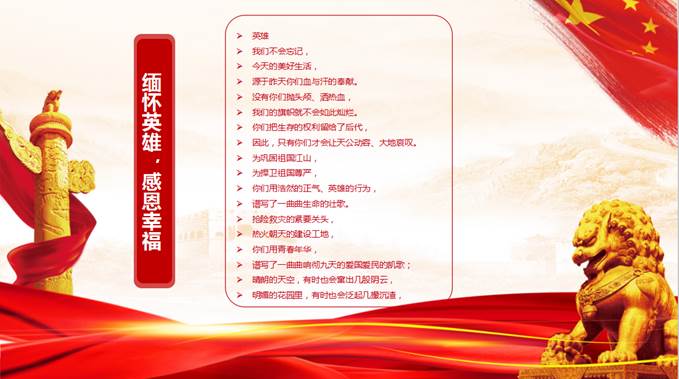 本次党日活动分为三个环节。首先,观看爱国主义教育专题片,以网络的形式寄托我们对革命先烈的哀思,深切缅怀革命先烈,珍惜当下的幸福生活,激发党员的爱国情怀,共同守护和平家园。其次,由党员代表讲述共和国英雄的故事。会上,向全体党员分别讲述了共和国勋章获得者于敏、人民科学家南仁东和人民英雄张超的先进事迹。他们为了抵御外强而制造“氢弹”,为了领先世界而创造“天眼”,为了强国强军而英勇就义。从这三位英雄的故事中,让我们深刻的感受到他们身上包含着敢于奉献、舍生忘死、顽强不屈的精神品质,他们为祖国和人民所做的伟大贡献我们永远铭记,他们的革命精神我们将代代相传。最后,党员同志们通过深情的诗歌朗诵,表达对先烈的崇高敬意和缅怀之情。大家纷纷表示,作为党员,我们不仅要向英雄学习,而且要将他们的精神在实际中绽放。
