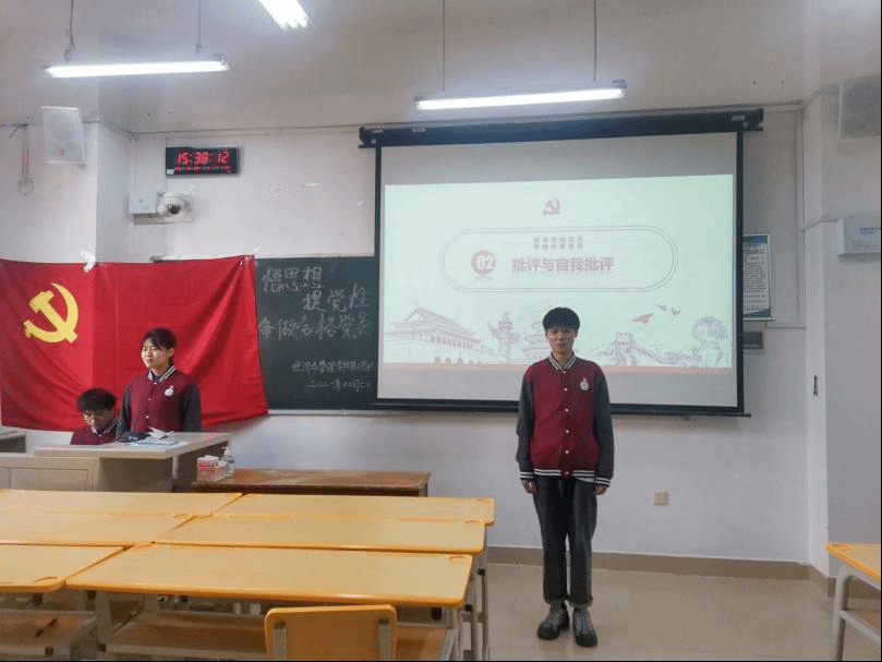 首先,主持人介绍本次活动的背景、目的及意义。随后,支部成员逐个展开批评与自我批评,结合树牢“四个意识”、坚定“四个自信”以及担当作为、日常生活、学习等方面,深刻的剖析自身的不足和存在的问题,其他党员也根据自己的日常观察和接触对其进行评价。学生党员代表李子萱和陈思文在进行自我批评时表示要不断学习应用习近平新时代中国特色社会主义思想,真学真用,摒弃形式主义,聚焦自身问题,支部问题,不断总结进步,努力用中国特色社会主义理论武装自己,争做合格党员。