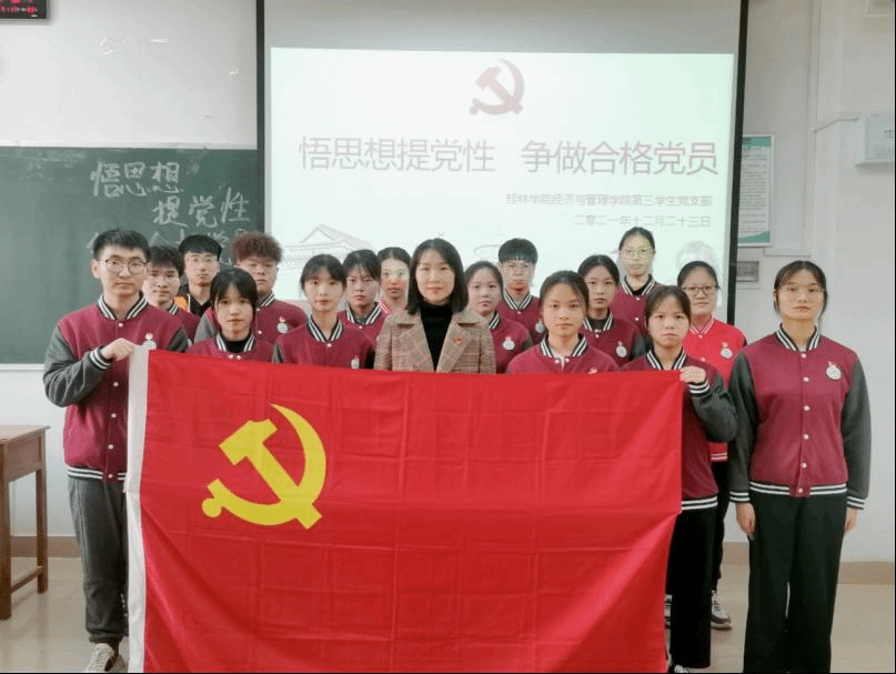 为加强党员党性修养,建设先锋党支部,12月23日经济与管理学院第三学生党支部在2310教室开展“悟思想提党性,争做合格党员”主题党日活动,支部书记王海玲和全体党支部成员参加此次活动。