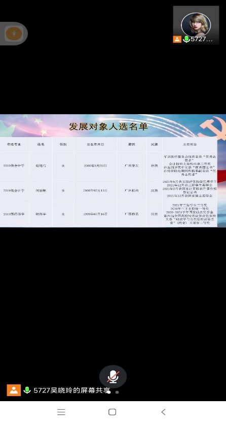 此次会议中,发展对象共有谢艳巧等3位同志。首先,会议介绍了谢艳巧等3位同志的有关情况,并讨论能否发展,由支部委员进行线上投票表决。随后,登记选票,对谢艳巧等3位同志无记名投票方式进行表决,宣布各位同志的票数。会议最后同意把谢艳巧等3位同志确定为发展对象人选,并确定了谢艳巧等3位同志的入党介绍人。