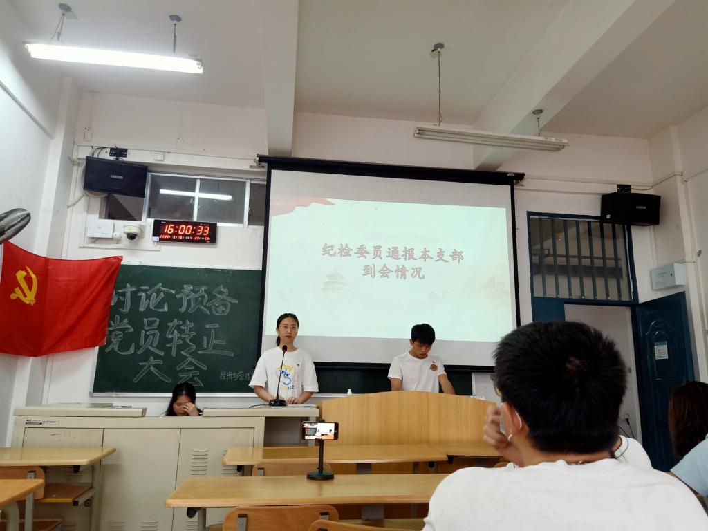 根据发展党员工作相关要求,6月16日下午4:00,经济与管理学院第四学生党支部在1303教室召开接收正式党员大会,支部书记郝环一同志、副书记贺春先同志以及全体党员参加会议。