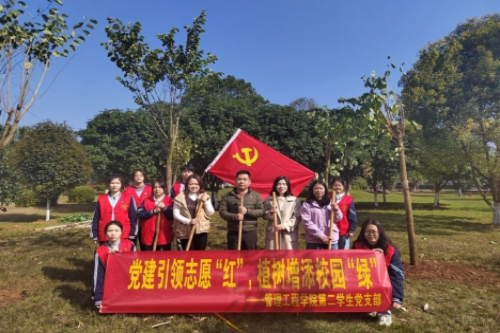 3月12日,为纪念第46个植树节,管理工程学院第二学生党支部开展党建引领志愿“红”,植树增添校园“绿”主题义务植树活动。管理工程学院党总支书记韩磊,学校办公室副主任江丽漓以及党支部成员参加了本次活动。