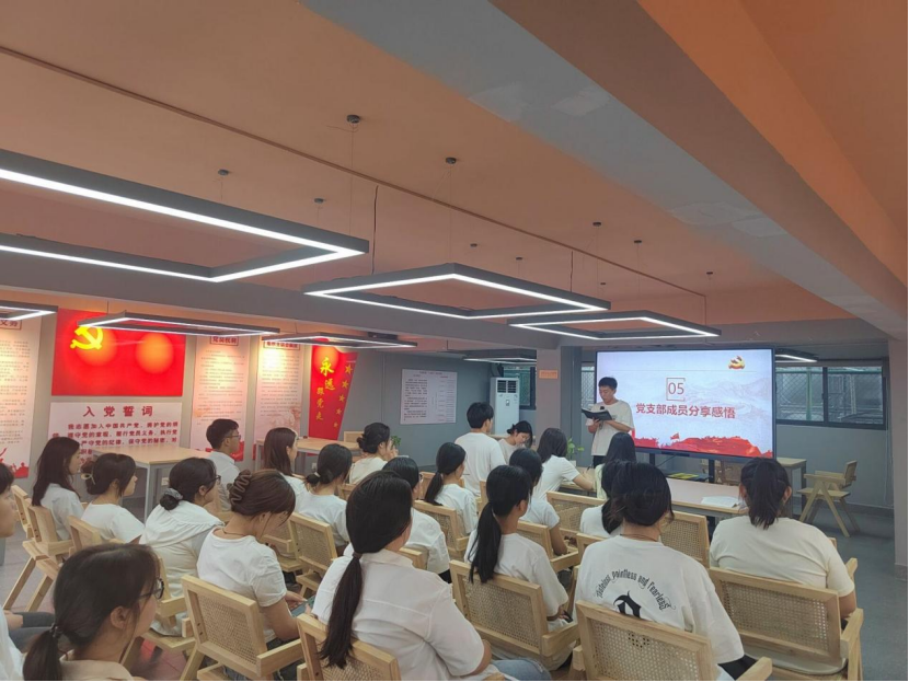 活动中,首先由党支部书记谢鹃霞老师,带领大家学习《中国共产党纪律处分条例》,提醒党员同志坚守党的纪律,维护党的集中统一,保持清正廉洁,积极履行党员义务,发挥先锋模范作用,自觉接受纪律处分。其次,进行“党旗领航·奋斗者 正青春”主题学习,通过朗诵《青春之光,纪律之炬》、观看视频《这样的礼收不得》、党支部成员分享感悟等,党员同志们深刻认识到纪律规矩的重要性,守纪律,讲规矩是对党员党性的考验。大家纷纷表示,要时刻警示自己要遵规守纪,要有敬畏之心、廉耻之心。