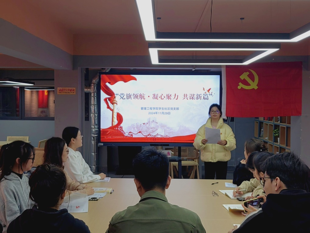 11月28日下午,管理工程学院学生社区党支部在一站式学生社区开展“党旗领航·凝心聚力 共谋新篇”主题党日活动,支部全体成员参加此次活动。