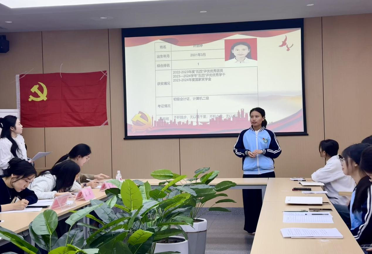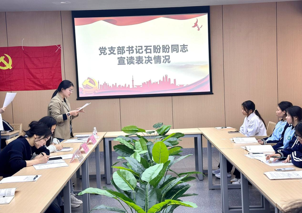 本次大会讨论是否接收邱裕婕等6名同志为中共预备党员问题,会议严格按照发展党员工作程序进行。邱裕婕等6名同志依次上台汇报自己培养考察期间的主要情况及对党的认识和入党动机等。6名同志的入党介绍人对其各方面进行公正客观的评价,并对其能否入党进行表态。接着王海玲代表支委会介绍本次拟发展预备党员的发展材料及政治审查情况。之后与会党员对邱裕婕等6名同志的入党问题进行讨论、发表意见。邱裕婕等6名同志根据与会党员意见进行表态发言。经过拥有表决权的正式党员对6名同志逐一进行无记名投票,支部书记石盼盼同志宣读表决结果,全体党员一致同意6名同志成为中共预备党员。大会结束之际,石盼盼同志进行大会总结,她对新接收的预备党员表示祝贺,并强调同志们要以一名正式党员的标准要求自己,时刻保持对党的忠诚,为党和人民的事业奉献自己的青春和热血,争做新时代优秀党员。