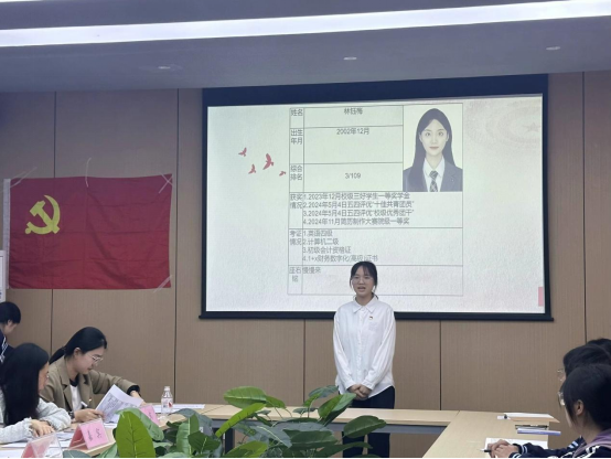 在会议开始时,预备党员们依次上台,向在场的党员同志们汇报了自己在预备期间的学习、工作和思想情况。随后,林钰梅等6名同志的入党介绍人对其各方面进行公正客观的评价,并对其能否入党进行表态。接着王海玲代表支部委员会介绍本次转正党员的材料及政治审查情况,林钰梅等6名同志根据与会党员意见进行表态发言,党支部书记石盼盼同志宣布投票结果。最后,王海玲同志为转正党员林钰梅等6名同志佩戴党员徽章,全体党员进行宣誓。