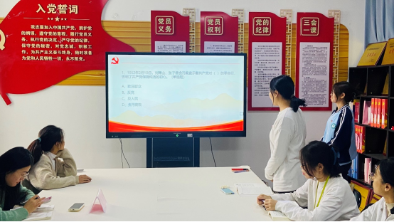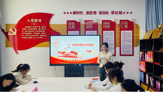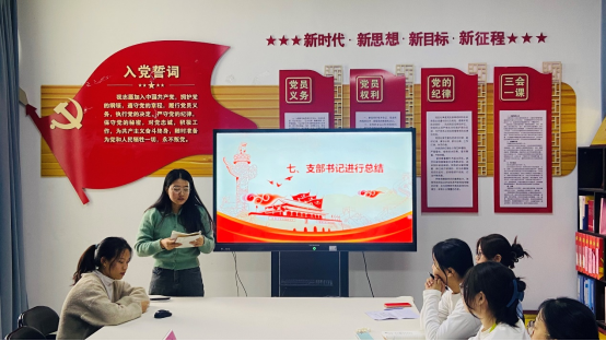 活动伊始,主持人介绍“党旗领航·倡廉洁   践使命”主题党日活动背景、目的及意义。全体支部成员起立奏唱《国际歌》。接着支部成员观看视频,党支部成员通过此次党日活动,加强思想建设,引导党员积极践行党的宗旨,充分发挥先锋模范作用,进一步增强党组织的凝聚力和战斗力。同时,致力于营造一个风清气正的政治生态,为实现党的奋斗目标贡献自己的力量。接着主持人进行了廉洁知识问答,通过一系列廉洁知识问答,调动了支部成员的积极性。冯盈盈、邱裕婕、王亚玲三位同志进行了《廉洁颂》的诗词朗诵:“廉洁文化润心田,清风正气满人间。同筑拒腐防腐线,共绘盛世新画卷。”接着观看《廉洁警示》视频,赵瑞佳同志发表感想,在新时代新征程中,中国共产党始终把加强党的建设放在首位,坚持全面从严治党,不断推进党风廉政建设和反腐败斗争,廉洁自律是党的生命线,我们要保持这一政治品格。