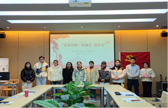 12月15日下午,管理工程学院学生社区党支部在一站式学生社区开展了“党旗领航·倡廉洁 践使命”主题党日活动,党支部全体成员参加了本次活动。