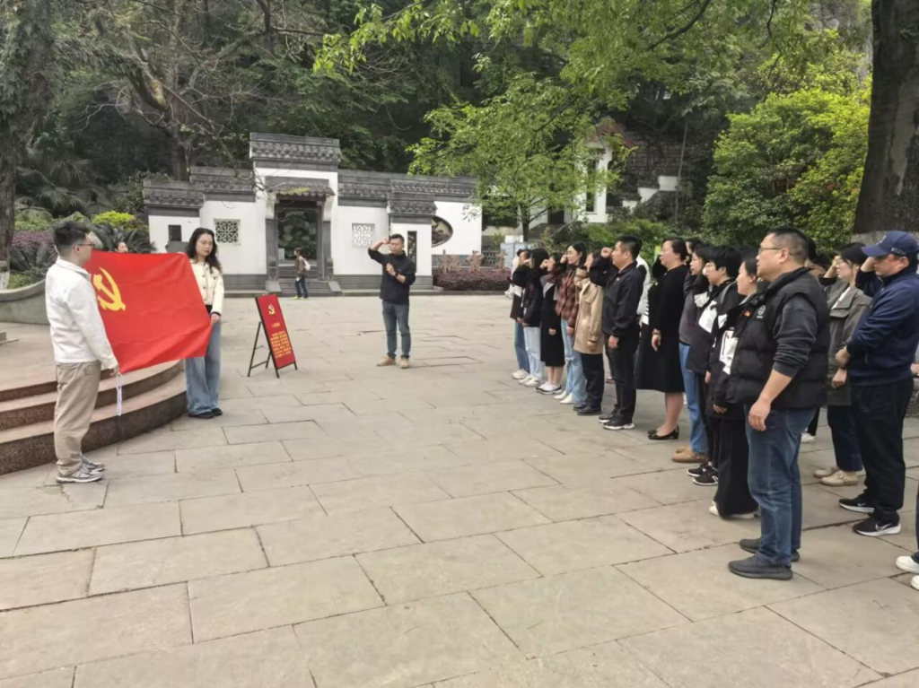 活动在肃穆的氛围中拉开序幕。全体党员整齐列队,主持人通过介绍陈光烈士的英雄事迹,带领大家回顾革命年代的峥嵘岁月。在集体默哀环节,教师们以静默表达对先烈牺牲精神的崇高敬意;随后,支部成员面向党旗庄严宣誓,铿锵有力的入党誓词回荡在纪念塔前,彰显了新时代党员的初心与使命。活动中,党员代表结合工作实际发表感言,纷纷表示要以先烈精神为镜,将“匠心”融入教学科研和管理服务,以精益求精的态度践行育人职责。支部书记在总结中指出,此次活动既是一次精神洗礼,也是一次使命动员。他号召全体党员以英烈精神为引领,在学院高质量发展中发扬“管理匠心”,将红色基因转化为育人动力,培养更多有理想、有担当的时代新人。