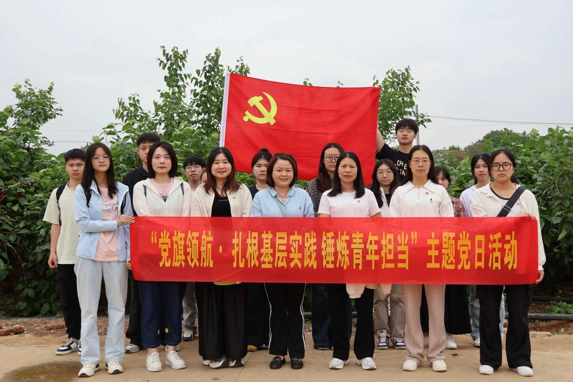 为推动党建与专业深度融合,引导青年党员在实践中践行初心使命,工商管理学院数智先锋学生党支部于 5 月 9 日前往桂林市农业科学研究中心桑葚基地开展 “党旗领航・扎根基层实践 锤炼青年担当” 主题党日活动。学校办公室副主任江丽漓以及党支部成员参加了本次活动。