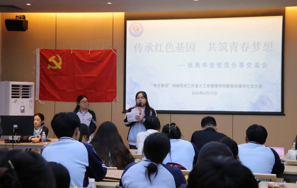 为传承红色基因,发挥优秀毕业党员榜样力量,6月19日下午,“青言青语”网络思政工作室联合工商管理学院数智先锋学生党支部在“一站式”学生社区辅导员工作室举行“传承红色基因,共筑青春梦想”优秀毕业党员分享交流会。工作室成员、党支部成员参会。