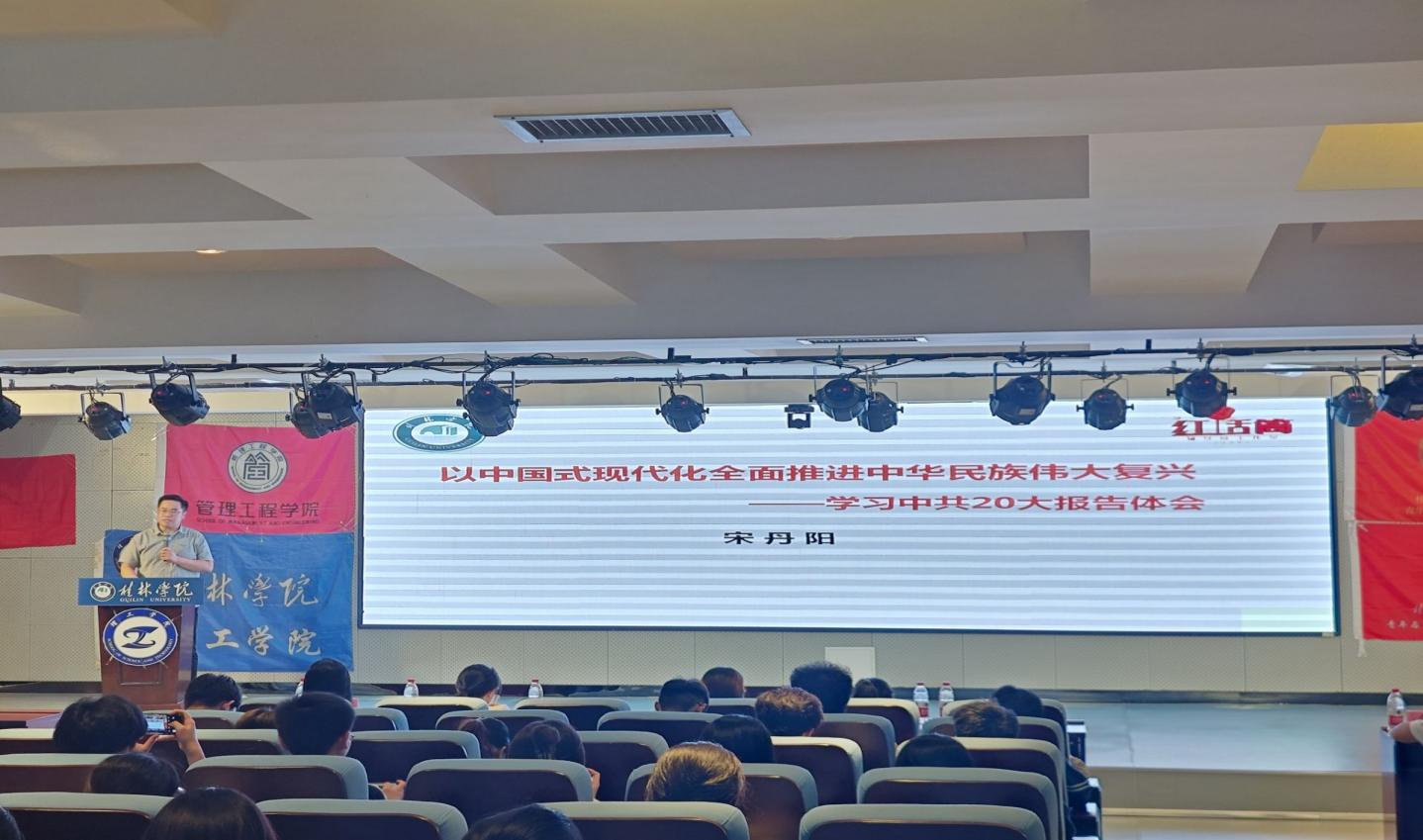 5月13日晚上,管理工程学院在至善讲堂开展2024年度“青年马克思主义者培养工程”大学生骨干培训班第四次理论课程学习,此次学习以“读懂中国式现代化,奋力实现中华民族伟大复兴”为主题。出席本次讲座的嘉宾有教育学院党总支副书记宋丹阳、管理工程学院团总支副书记吴东艳、理工学院团总支书记蓝贤斯、理工学院团总支副书记杨清棠、管理工程学院团总支学生会书记团、主席团成员。