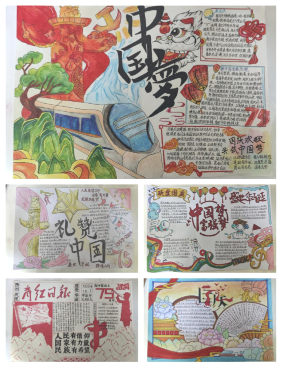 活动中,同学们充分发挥自己的创意与才华,用手中的画笔描绘出对祖国的热爱与祝福。一幅幅手抄报内容丰富,涵盖了国庆的历史由来、祖国的壮丽山河、现代化建设的伟大成就以及对未来的美好憧憬等方面。色彩斑斓的画面中,五星红旗飘扬,天安门雄伟壮观,高铁飞驰在广袤大地,展现了同学们对祖国繁荣昌盛的深刻理解和自豪之情。