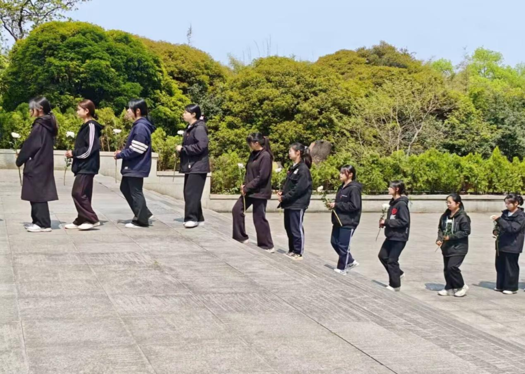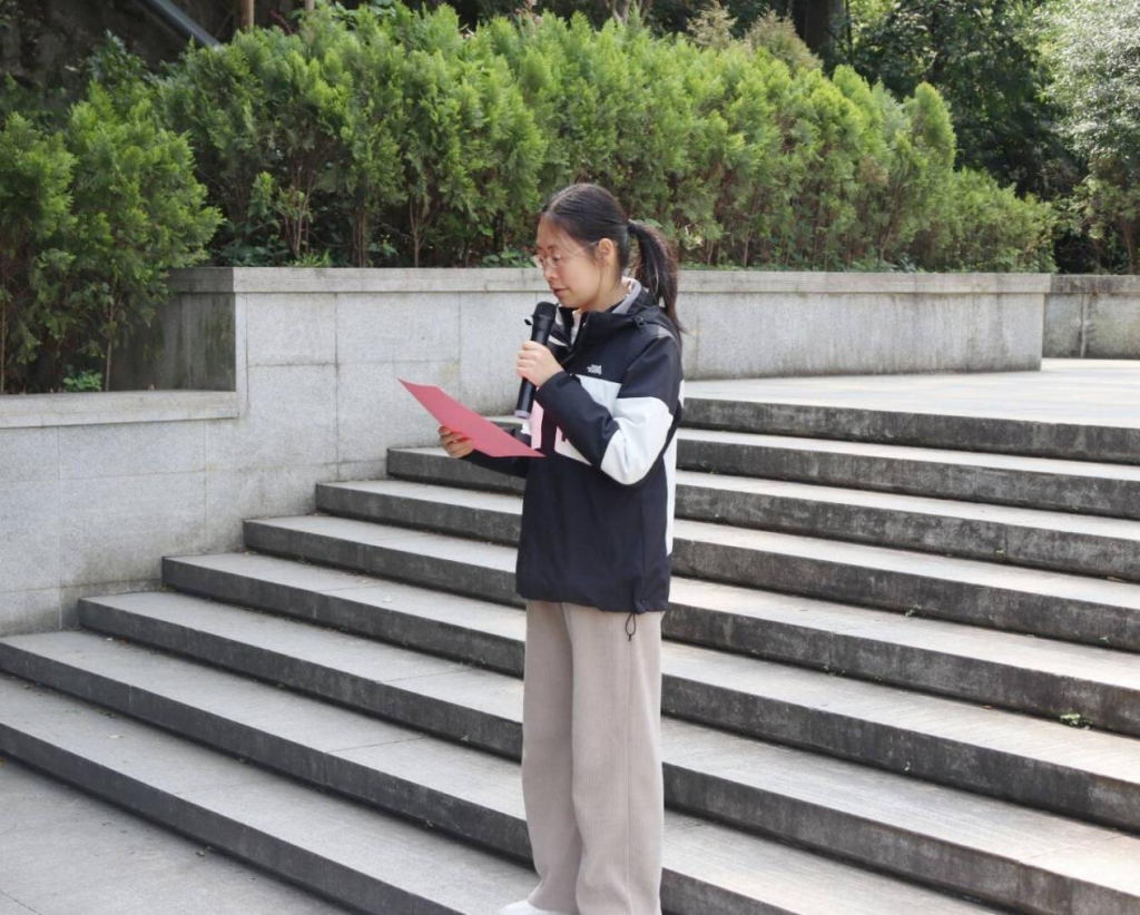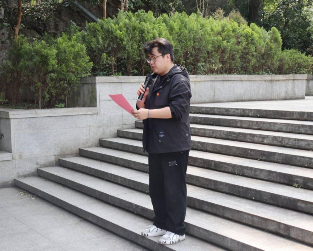 活动当天,团总支书记及副书记带领着志愿者们怀着崇敬的心情齐聚在七星公园烈士纪念碑前。在肃穆的氛围中,大家通过默哀致敬、向烈士敬献鲜花等庄重形式,向英烈们表达了无尽的敬意与深切的哀思。每一朵鲜花都承载着对烈士的怀念与敬仰,每一缕哀思都寄托着对忠魂的追思与缅怀。此外学生代表和团总支书记相继发言,他们以饱满的热情和深情的语言,进一步阐述了本次活动的深远意义,勉励与号召全体成员铭记历史、珍惜当下、勇担未来。