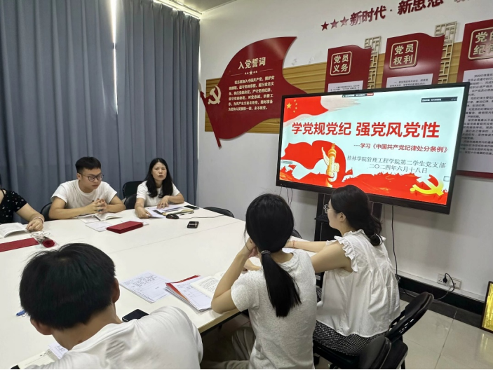 为深入学习贯彻党规党纪,提升党支部成员的党性修养,管理工程学院第二学生党支部于6月18日在3505党员活动室开展了题为“书记讲党员听:纪律党课——学党规党纪 强党风党性”的主题党课,党支部全体成员参加。