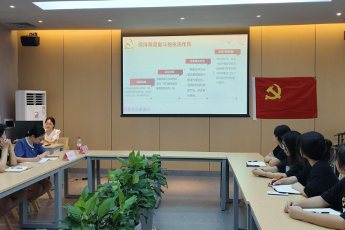 会上,沈娟以回顾党的初生之路,讲解了从建国初期到十八大以来艰苦奋斗生活作风的历程。其次,沈娟带领大家集体学习《中国共产党纪律处分条例》,以生活纪律为主线展开,强调了纪律对于党员个人成长和党组织健康发展的重要性,每一位党员同志都应当将纪律内化于心,外化于行,以实际行动践行党性原则,呼吁大家需真正做到心中有党、心中有民、心中有责、心中有戒。