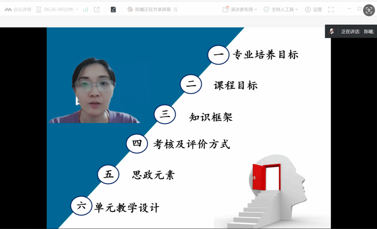 9月3日,电子商务教研室根据学院工作部署,结合教研室实际情况,通过线上+线下的形式开展了本学期的“教师新开课、首开课试讲”以及“新入职教师试讲”活动,本次活动由教研室主任岳庆英主持,教研室全体老师参与。
