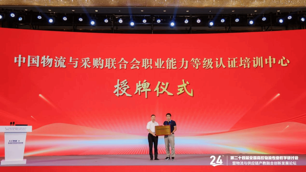 会议聚焦人工智能与物流高等教育的深度融合,围绕“产教协同推进智慧物流人才培养”“多学科交叉融合的物流专业建设”等议题展开深入研讨。中国物流与采购联合会职业能力等级认证培训中心授牌仪式作为会议亮点环节,旨在推动高校与产业协同发展。在我院曾添老师的努力下,桂林学院被授权为供应链管理师职业能力等级认证培训中心。丁鸿老师代表桂林学院上台接受授牌,此外还获得物流师、采购师等培训中心资格,这进一步充实学院的职业认证体系。这不仅是学院深化产教融合的成果,更是响应国家‘人工智能+’战略的重要一步。供应链管理师培训中心的建立,将助力我们培养更多适应智慧物流时代的高素质人才。”