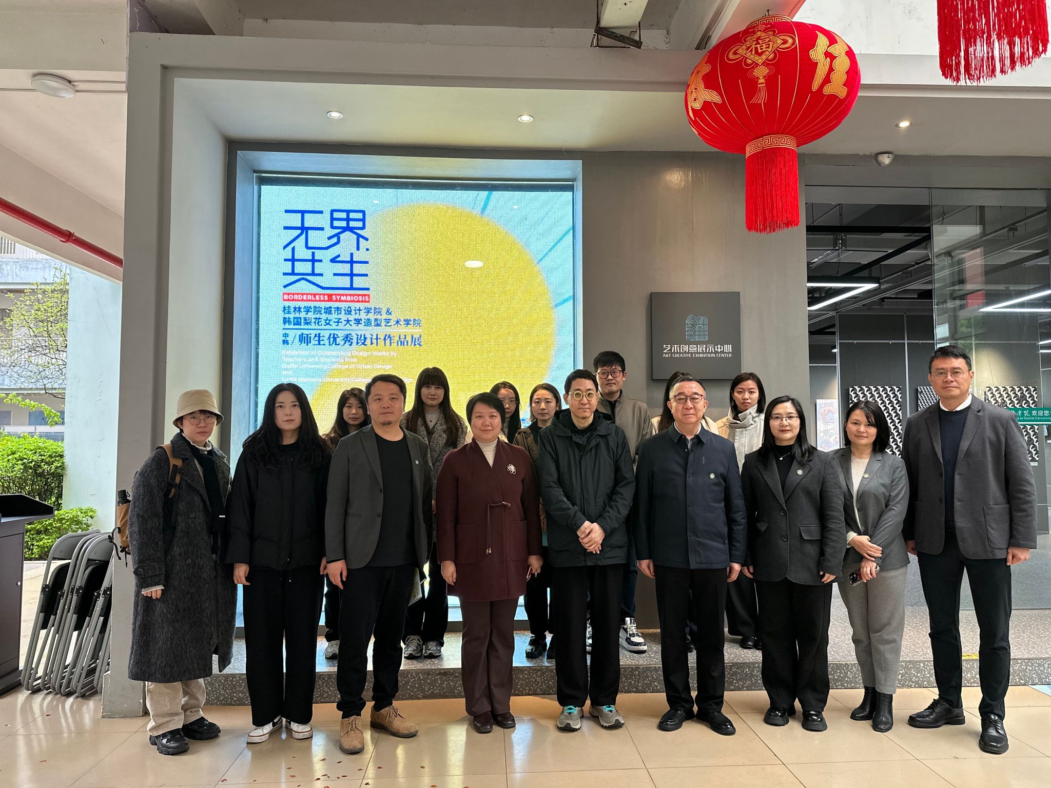 3月20日上午,校长吴郭泉热情接待韩国梨花女子大学视觉传达设计学科主任、博士生导师金仁声教授。金教授再度到访,出席“无界·共生——中韩师生优秀设计作品展”开幕式并开展学术交流。副校长杨庆庆、何玲,以及教务处、国际合作与交流处、城市设计学院、外国语学院(国际教育学院)等相关部门负责人及师生代表参与活动。此外,桂林旅游学院艺术设计学院院长聂辉、广西师范大学美术学院副院长刘宪标也受邀出席。
