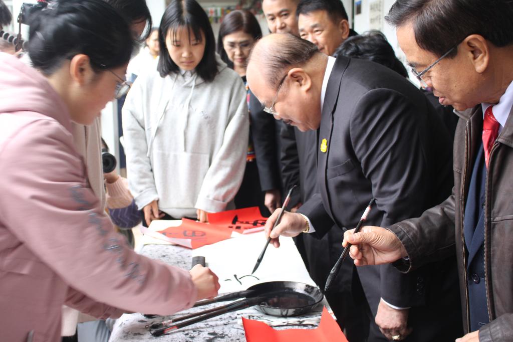 中泰双发在会上达成一致共识后,举行了“泰国留学生汉语学习基地”授牌仪式。泰国留学生汉语学习基地是我校与泰国大城商业技术学院、泰国曼谷唐恩技术学院、泰国春武里技术学院、泰国那空那育商业技术学院四所学院精诚合作的结晶,将为深化中泰四校合作关系奠定更加深厚的基础,相信在中外双方共同努力下,这一基地将成为培养汉语人才的摇篮以及展示中华文化的窗口。
