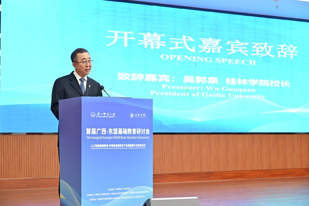 5月17日至18日,学校与广西师范大学联合举办首届广西—东盟基础教育研讨会。本次研讨会以“人工智能赋能基础教育创新与区域合作”为主题,吸引了来自国内和泰国、越南、印尼等东盟国家的专家学者、教育管理者及一线教师代表共200余人参会。与会人员围绕人工智能时代的基础教育变革、教师队伍建设、区域教育合作等议题展开深度交流,共绘教育发展蓝图。