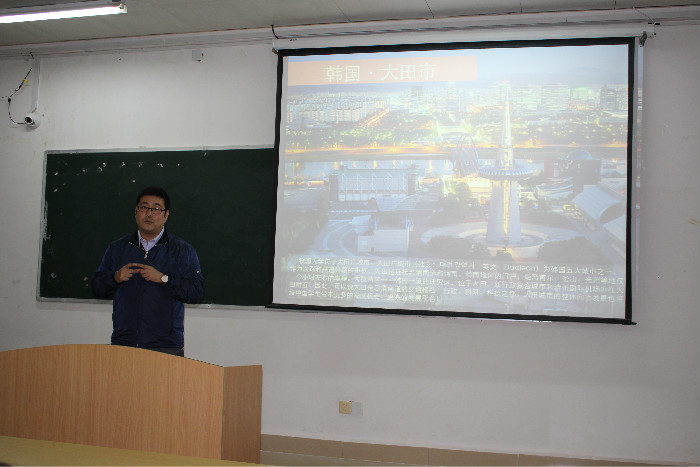 On October 17, Teacher Guoqian and Qin Dechi, the director of the Mokwon University China representive office, came to our school and gave a speech about the master project in classroom 1410.