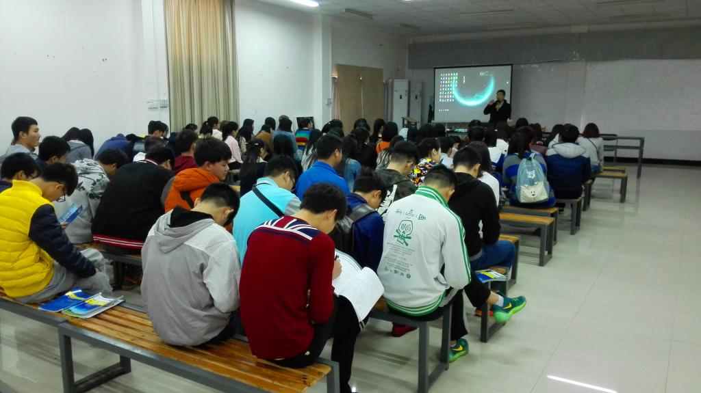 In the afternoon, teacher Lin gave a speech to students in Art and Design Department, he showed a short film display the climate and customs of Taiwan, also the departments introduction and characteristics of the campus, nuanced and vivid, warmly welcomed by the students.