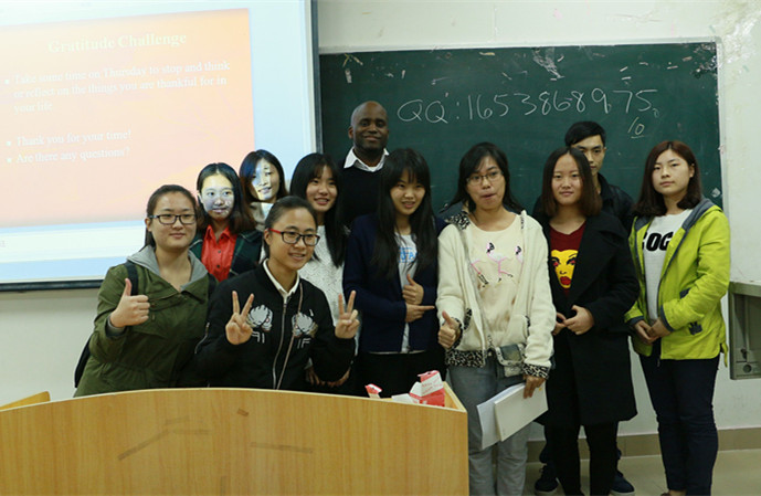 It is on Tuesday evening November 24,2015, over 100 students from different departments of Lijiang College, were seated at Room 1503, listening the lecture " American Thanksgiving Day "given by American teacher, Julius.