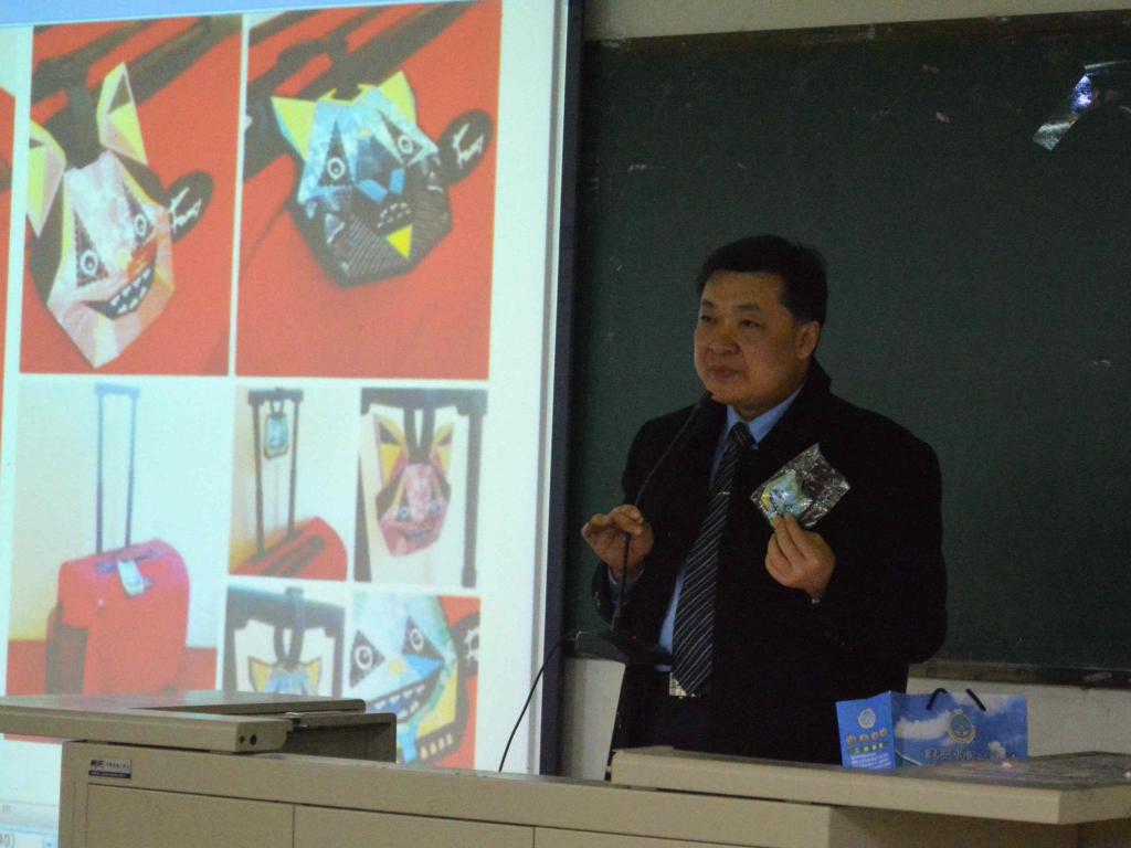 In the lecture, Doctor Chen showed us a short film display the climate and customs of Taiwan, also the departments introduction and characteristics of the campus. Took example of the design results, he presented students’ learning outcomes. Doctor Chen also brought some souvenirs from Chienkuo Technology University for the students.