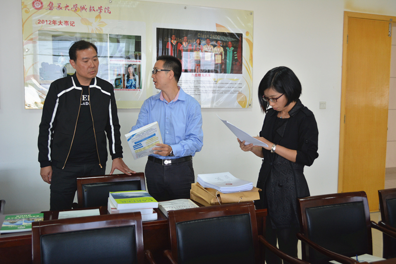 In the process of communication, each side shared their International exchange experiences. The director of International Exchange and Cooperation Department in Xiamen University Tan Kah Kee College Guo Jie introduced their hot international cooperation programs recently, and showed the school history exhibition room to the visiting mission.